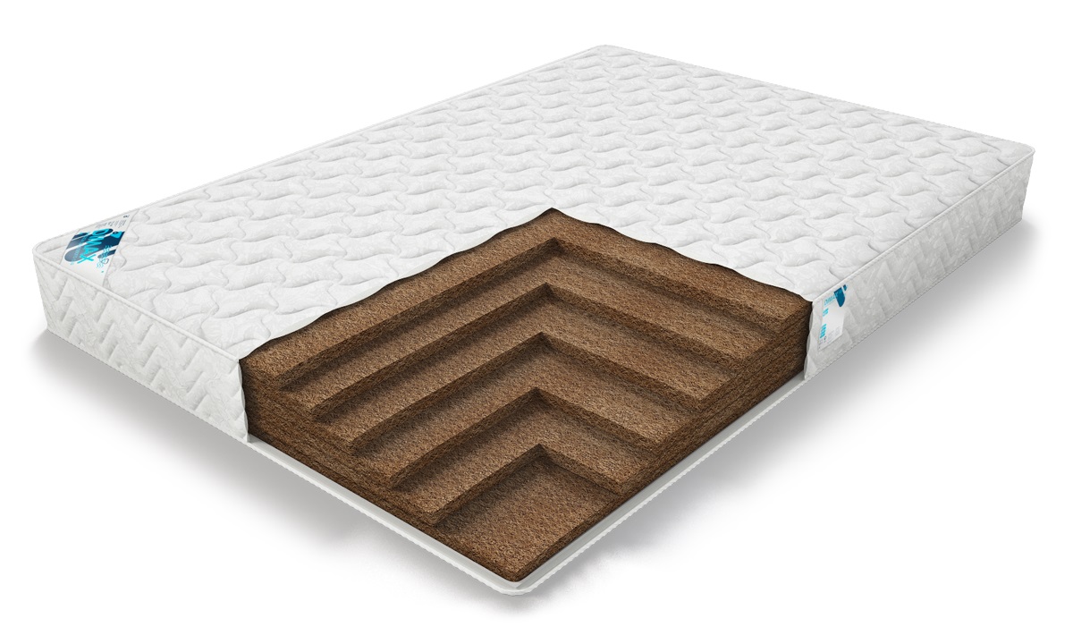 Наполнителем матраса служит кокосовое волокно, которое проходит специальную антибактериальную обработку. Оно не подвержено образованию плесени и грибков, в нем не живут вредоносные микроорганизмы. Толщина матраса 19 см и он способен выдержать нагрузку до 160 кг. Хотя матрас кокосовый 19см, достаточно жесткий, спать на нем комфортно, он поддерживает позвоночник в анатомически правильном положении во время сна.